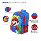 Mochila Grande Azul Chenson Mario Bros Primaria PLAYBA para niño