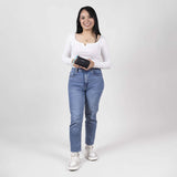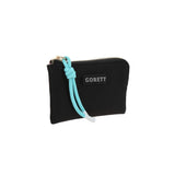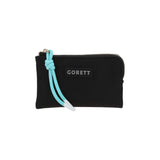 Monedero para mujer de Gorett en negro, ideal para organizar tus esenciales con estilo. Este monedero cuenta con un acceso principal con cierre y un tarjetero interno con 2 espacios para tarjetas lisas o con relieve. Compacto y funcional, con medidas de 13 cm de largo, 8.5 cm de alto y 1 cm de ancho, este monedero es la opción perfecta para mantener todo en orden. Elegante y práctico, es un imprescindible en tu colección.