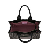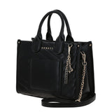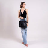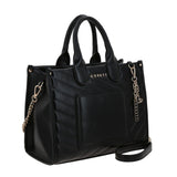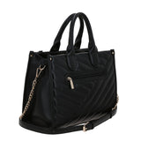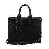 • Diseño sofisticado: Satchel negro con acabado capitonado en símil de piel.
