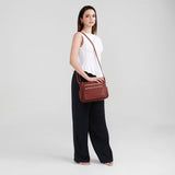 Crossbody Madison Floresia en color tinto, ideal para un estilo práctico y con personalidad. Incluye doble bolsillo frontal con cierre, compartimento principal con cierre, bolsillo trasero, laterales e interno con cierre para mayor organización. Su asa larga ajustable brinda comodidad en todo momento. Fabricado en símil de piel. ¡Este Crossbody es el complemento perfecto! ¡Organiza tu día con estilo con este Crossbody y luce increíble con tu Crossbody!