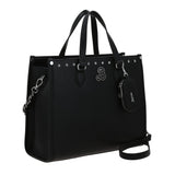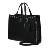 • Diseño sofisticado: Satchel negro con acabado en símil de piel y detalles inspirados en Barbie.