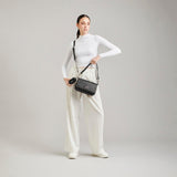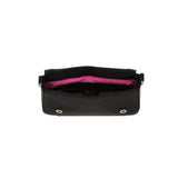 - Diseño compacto: Baguette negro con acabado en símil de piel, ideal para llevar lo esencial.