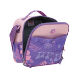 Lonchera Happy Girl Bagster en color morado, con un hermoso diseño floral sublimado que destaca tu estilo. Cuenta con un amplio compartimento principal con cierre, bolsillos laterales y forro térmico para mantener tus alimentos frescos. Incluye asa larga ajustable, asa de mano y banda elástica trasera para mochila con ruedas. Hecha de 100% poliéster, es ligera y resistente. Las medidas de esta lonchera son 23 cm de largo, 25 cm de alto y 14 cm de ancho. ¡Diseño, funcionalidad y frescura, todo en uno!