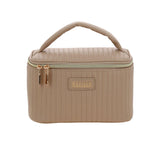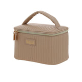 Cosmetiquera Madison Lomer en color caqui, con un diseño capitonado que combina elegancia y funcionalidad. Cuenta con un amplio compartimento principal con cierre, organizador para brochas y una cómoda asa de mano para fácil transporte. Fabricada en símil de piel. ¡Esta cosmetiquera es ideal para mantener tus productos de belleza organizados y a la mano! ¡Añade esta cosmetiquera a tu colección y disfruta de la comodidad y estilo!