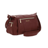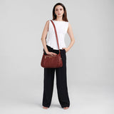 Crossbody Madison Floresia en color tinto, con un diseño moderno y funcional. Cuenta con un bolsillo frontal con cierre, compartimento principal con cierre, bolsillo trasero, y bolsillos laterales e internos con cierre para mantener tus pertenencias organizadas. Su asa larga ajustable ofrece comodidad durante todo el día. Fabricado en símil de piel. ¡Este Crossbody es ideal para tu día a día! ¡No te pierdas la oportunidad de tener este Crossbody!