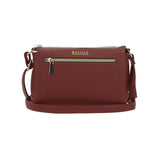 Crossbody Madison Floresia en color tinto, ideal para mantener todo en orden con un toque de estilo. Cuenta con un bolsillo frontal con cierre, compartimento principal con cierre, bolsillo trasero, triple compartimento interno y un bolsillo interno con cierre para mayor organización. Su asa larga ajustable brinda comodidad todo el día. Fabricado en símil de piel. ¡Este Crossbody es práctico, elegante y perfecto para ti! ¡Luce increíble con tu Crossbody!