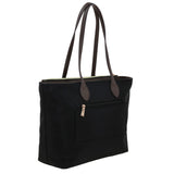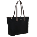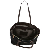 La Bolso Tote Negra FELICIA de Madison es perfecta para viajeras con su banda para bastón de maleta y organización superior.