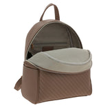 Mochila Madison Player en color café con diseño sofisticado y gráfico embosado que eleva tu estilo. Cuenta con amplio compartimento principal, doble bolsillo interno (uno con cierre), bolsillo trasero y frontal con cierre, además de bolsillos laterales. Fabricada en símil de piel, combina funcionalidad y elegancia. ¡Esta mochila es el accesorio ideal para destacar! ¡No puede faltar en tu colección de mochilas!