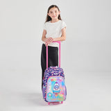 La mochila con ruedas Happy Girl x Vania Bachur en color rosa es perfecta para combinar estilo y funcionalidad en el día a día.