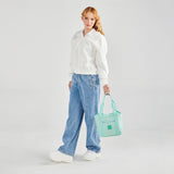 La lonchera 1818 en color turquesa está diseñada para quienes buscan comodidad y estilo. Con un cierre con diseño, ofrece un amplio compartimento principal con cierre y un práctico bolsillo frontal de fácil acceso. Además, incluye un asa de hombro para mayor comodidad y un forro térmico que mantiene tus alimentos frescos durante todo el día. También cuenta con un elástico interior para botella, lo que la convierte en la opción perfecta para tus comidas diarias.