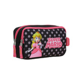 Lapicera Chenson Mario Bros Loly en color negro, con diseño de la Princesa Peach y estampado de lunares que combina estilo y personalidad. Hecha de 100% poliéster, esta lapicera cuenta con doble compartimento con cierre, ideal para mantener tus objetos organizados y seguros. Sus medidas de 23 cm de largo, 13 cm de alto y 7 cm de ancho la hacen práctica y funcional. Elige esta lapicera y disfruta de organización, diseño original y la calidad que ofrece Chenson.