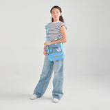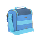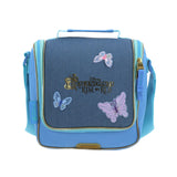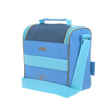 La Lonchera Chenson Descendientes Chama en color azul es la opción perfecta para quienes buscan estilo y practicidad. Confeccionada en 100% poliéster, esta lonchera cuenta con un amplio compartimento principal con cierre, forro térmico para mantener tus alimentos frescos y un elástico interior para botella, proporcionando comodidad y organización. Además, incluye un asa larga ajustable, asa de mano y una banda elástica trasera para mochila con ruedas.