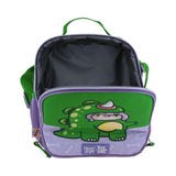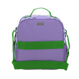 Lonchera Happy Girl Vania Bachur Vani en color lila, con un divertido diseño exclusivo inspirado en dinosaurio. Su compartimento principal amplio con cierre, bolsillos laterales, y forro térmico mantienen tus alimentos frescos y organizados. Incluye asa larga ajustable, asa de mano y banda trasera para mochila con ruedas. Hecha de 100% poliéster, esta lonchera es ideal para el día a día. Las medidas son 23 cm de largo, 25 cm de alto y 14 cm de ancho. ¡Haz de esta lonchera tu nueva compañera de aventuras!