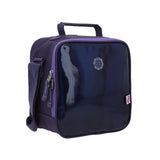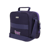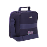 Lonchera Happy Girl Aurora en color morado, perfecta para llevar tus alimentos con estilo y comodidad. Cuenta con un amplio compartimento principal con cierre, forro térmico, elástico interior para botella, asa larga ajustable, asa de mano y banda trasera para sujetar a mochila con ruedas. Hecha de 100% poliéster, es resistente y ligera. Las medidas de esta lonchera son 23 cm de largo, 23 cm de alto y 13 cm de ancho. ¡Luce tu lonchera favorita todos los días con esta práctica lonchera!