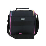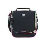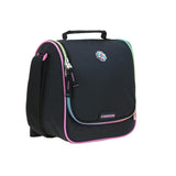 Lonchera Happy Girl By Chenson color negro, imprescindible para la comida escolar de tu hija. Con amplio compartimento y elástico interior para botella, es práctica y funcional. Su asa de mano y larga ajustable facilitan su transporte. Además, su banda elástica trasera permite acoplarla a una mochila con ruedas. ¡Haz que la hora del almuerzo sea emocionante y organizada con esta lonchera!