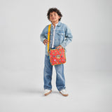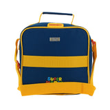 La Lonchera Mario Bros Chenson Palac en color azul presenta un vibrante diseño collage de personajes en serigrafía y sublimado. Esta lonchera es la combinación perfecta de estilo y funcionalidad. Con un amplio compartimento principal con cierre, asa larga ajustable, asa de mano, forro térmico y banda elástica trasera para sujetarla a una mochila con ruedas, es la opción ideal para llevar tus alimentos de manera cómoda y organizada. Además, incluye un elástico interior para mantener tu botella en su lugar. ¡La lonchera ideal existe!