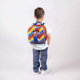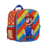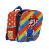 Lonchera roja Mario Bros de Chenson con diseño termoformado, amplio compartimento, forro térmico y bolsillos laterales. Ideal para mantener la comida fresca y transportarla cómodamente.