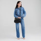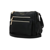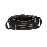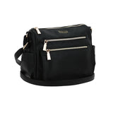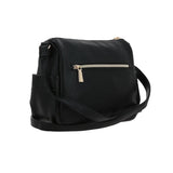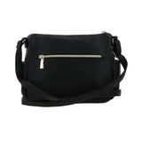 Crossbody Madison Floresia en color negro, con un diseño funcional y elegante. Cuenta con un doble bolsillo frontal con cierre, un compartimento principal con cierre y un bolsillo trasero con cierre. Además, tiene bolsillos laterales y un bolsillo interno con cierre para mantener tus pertenencias organizadas. Su asa larga ajustable ofrece comodidad. Fabricado en símil de piel. ¡Este Crossbody es perfecto para complementar tu look!