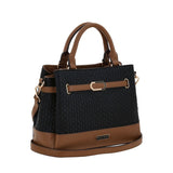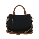 - Elegancia atemporal: Satchel negro en símil de piel para un look sofisticado.